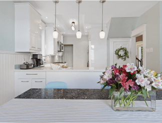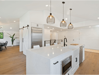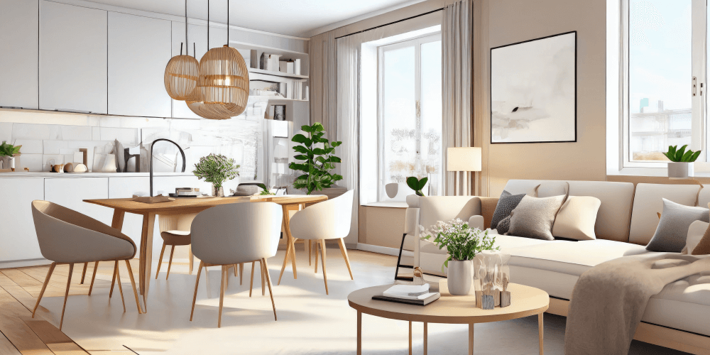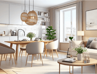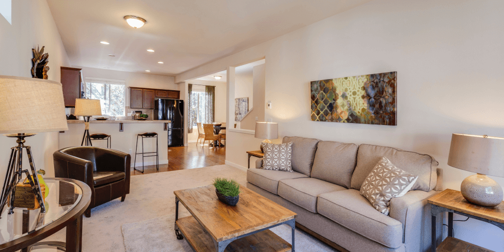 The living room features large windows that allow ample natural light to illuminate the room, creating a warm and inviting ambiance. The plush sofas and cozy armchairs provide a comfortable seating arrangement, ideal for unwinding after a long day. A sleek flat-screen TV mounted on the wall offers entertainment options for your viewing pleasure.